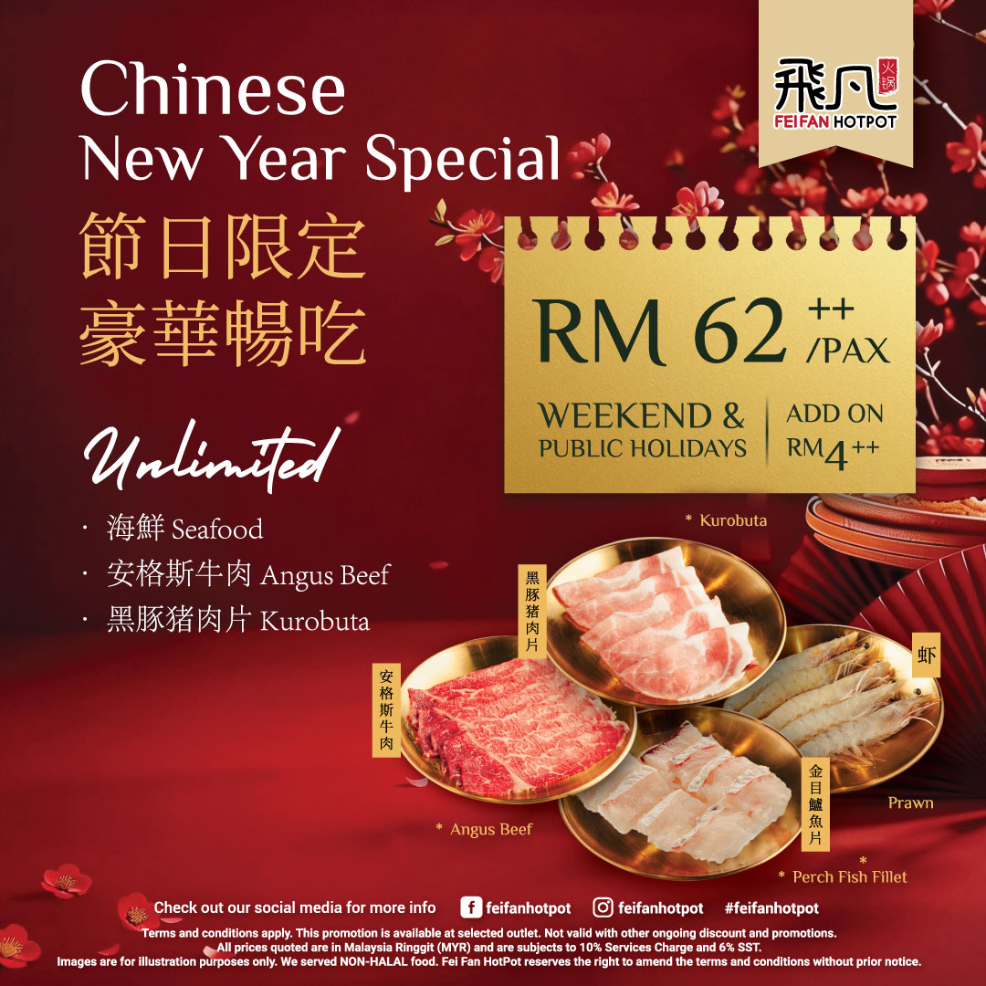 10 Feb, 2026 by Syafiqah 🧧【新春年味限定套餐 · 霸气上线!✨】 🏮✨ 人均只要 RM62++,直接实现海鲜 & 肉类财富自由! 新年聚会就是要够豪气!平时那些需要加购的顶级海鲜、安格斯牛肉、黑豚猪肉片……现在通通进入【任点任吃】名单!不仅吃得饱,更要吃得“发”!😍 About atsyafiqah