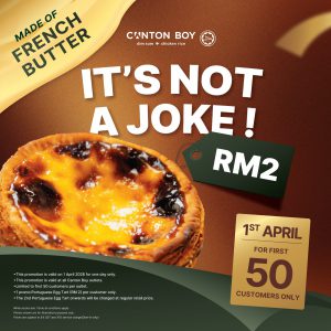 31 Mar, 2026 by aini shaffi It’s not a joke 😍 Portuguese Egg Tart for only RM2! Happening on 1st April – first 50 customers only. Don’t miss out! About ataini